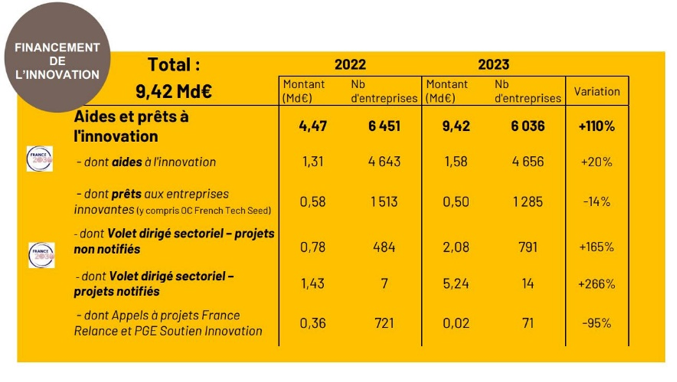 A noter que le volet dirigé de France 2030 compte pour plus de 55% des aides à l’innovation 2023 de BPI France.