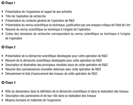 Dans les annexes, relativement au dossier justificatif, il est rappelé p.70 que le dossier soit bien décomposé en opérations de R&D :